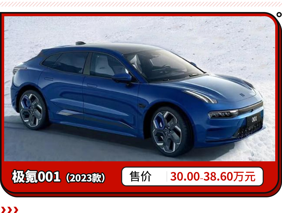 近日,2023款极氪001迎来正式上市,新车共推出4款车型,售价区间为30.00-38.60万元,并根据高低配置的不同,提供双/单电机两种动力版本供消费者选择。