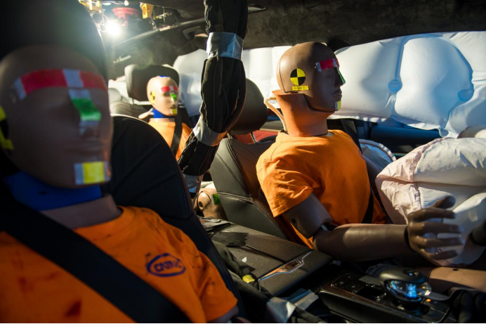 约束系统方面,M8宗师所有座椅没有出现靠背扭转、滑轨脱落、固定点脱落失效等情况。前后安全带均完成预紧。前排乘员在接触气囊时,气囊已完全爆开,且头部均正常接触于气囊中央,而二、三排假人头部也都未与前排座椅接触,车上6个假人状态完好,伤害值表现优秀。