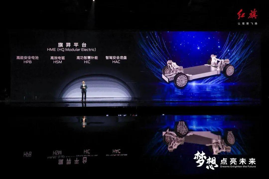 既然是冲击高端新能源市场,自然是少不了黑科技的掌握。从前面介绍的新车配置来看,红旗参与了核心技术的研发和制造,推出FMEs超级架构,由旗羿HME和旗偲HIS这两个电动化平台组成。