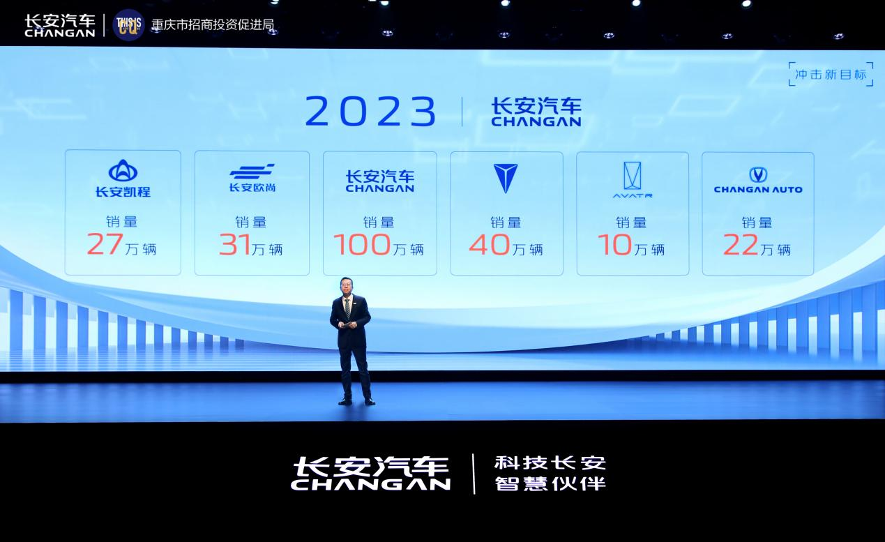 现代化建设聚焦高质量发展,强调依靠创新构建新发展格局,长安汽车稳中求进、踔厉奋发、勇毅前行。在大会上,长安汽车总裁王俊分享了2023年长安汽车总体目标:产销突破280万辆,确保规模增长高于行业10个百分点以上,长安品牌乘用车目标100万辆,深蓝品牌实现40万辆交付任务,阿维塔向10万辆冲刺。他强调,长安汽车今年将全力冲击新目标、投放新产品、量产新技术、发力新营销、韧性新供应、抢占新赛道,发力六大行动全速前进。预告了长安汽车今年将陆续投放深蓝S7、C236、览拓者EV、阿维塔E12等重磅产品。同时,长安汽车规划的C928、C857、D857、C318、C390、B390、CD701、CD570、C916、E15、E16等全新产品早已蓄势待发。