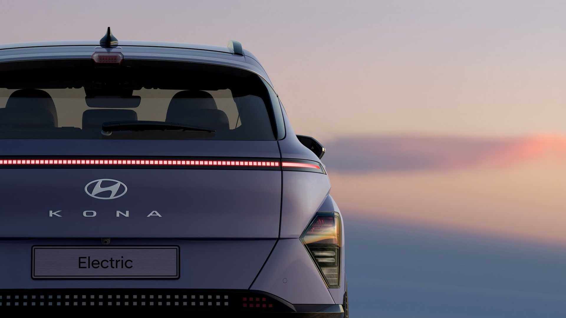 车尾方面,第二代KONA车型采用了手尾呼应的设计手法,尾灯与车头造型完美呼应,同样采用了横跨整个车尾部的细长LED光源灯带,并在灯带下方两侧设计有三角形的传统尾灯组,看起来新潮感很足。