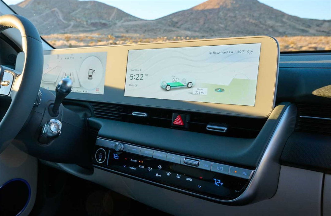 内饰方面,官方给出的图片与现代Ioniq 5(艾尼氪5)车型内饰极为相似,很可能是KONA Electric电动版本的内饰效果图。两块12.3英寸的屏幕作为仪表和多媒体大联屏,换挡杆采用怀挡式设计,从转向柱右侧伸出,这也是现代电动车型的一大设计特点。
