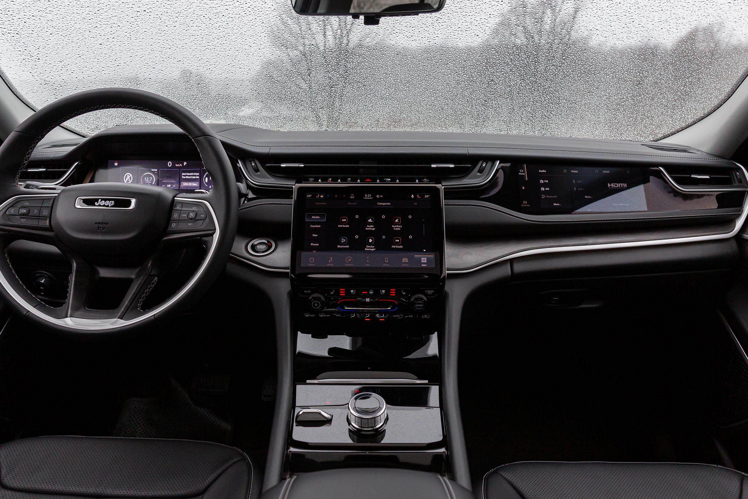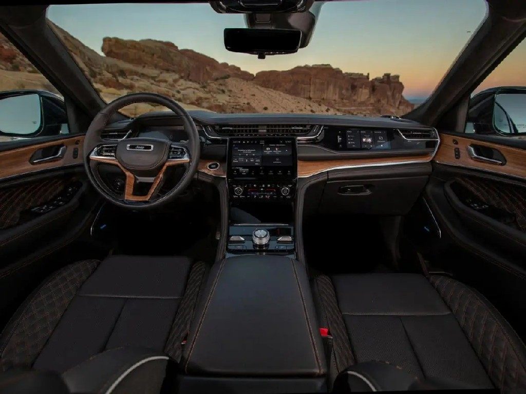 虽说大切诺基外观极其粗犷,但也并不影响其内饰的精致程度。新车将采用真皮+实木木纹的材料覆盖内饰,配备仪表盘、中控和副驾驶前方的三块液晶显示屏,科技感与豪华氛围兼具,相较于国内现款在售的进口大切诺基车型,质感有着质的提升。