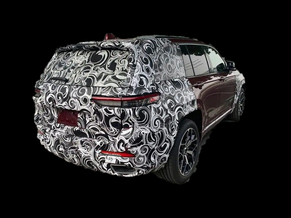 图片上所曝光的全新大切诺基为标准轴距版,通过其所搭载的全新五辐样式轮圈造型来看,该车型为顶配的Summit Reserve版本。