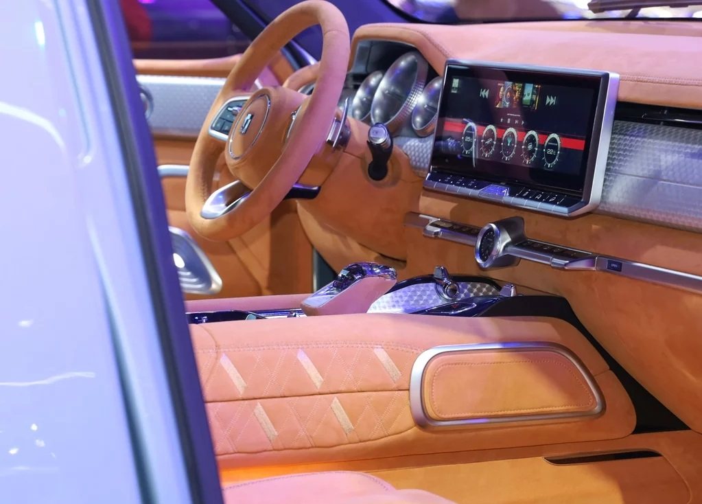 内饰方面,从网上曝光来看,坦克700整体布局与此前其在上海车展首次亮相大致一样,配备与坦克500风格类似的三辐式多功能方向盘、炮筒式三连仪表盘、大尺寸悬浮式多媒体显示屏、圆形指针式时钟和电子式换挡杆,豪华感和科技感都表现不错,与硬朗的外观造型形成鲜明对比。当然,具体如何,还以官方公布为准。