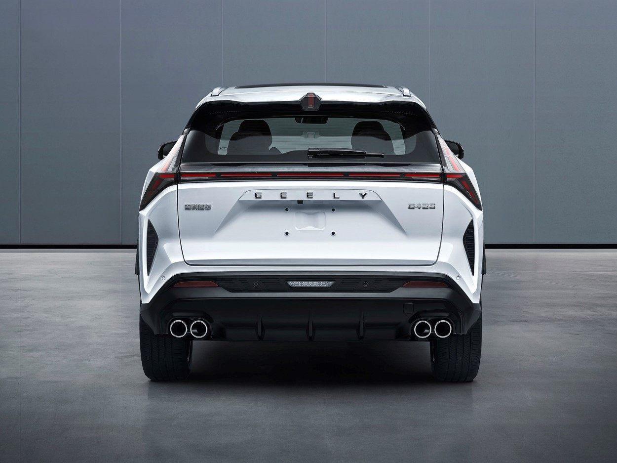 而来到车尾,相信大家与教授一样,第一眼望去有种莫名的熟悉感,是的,新车的尾部造型与博越L极其相像,采用高辨识度的H型尾灯设计,上半部分带有一只外扩的扰流板,下半部分则配备双边双出的排气布局,整体给人的感觉就显得特别的战斗。