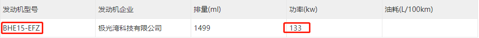 动力方面,根据工信部给出的申报信息来看,新车将配备的一副由极光湾科技有限公司所提供的代号为BHE15-EFZ的1.5T涡轮增压发动机,最大功率133kW。与吉利博越L为同一款发动机。因此,新车将会采用与博越L同一套动力单元,与之匹配的将会是7DCT湿式双离合变速箱。