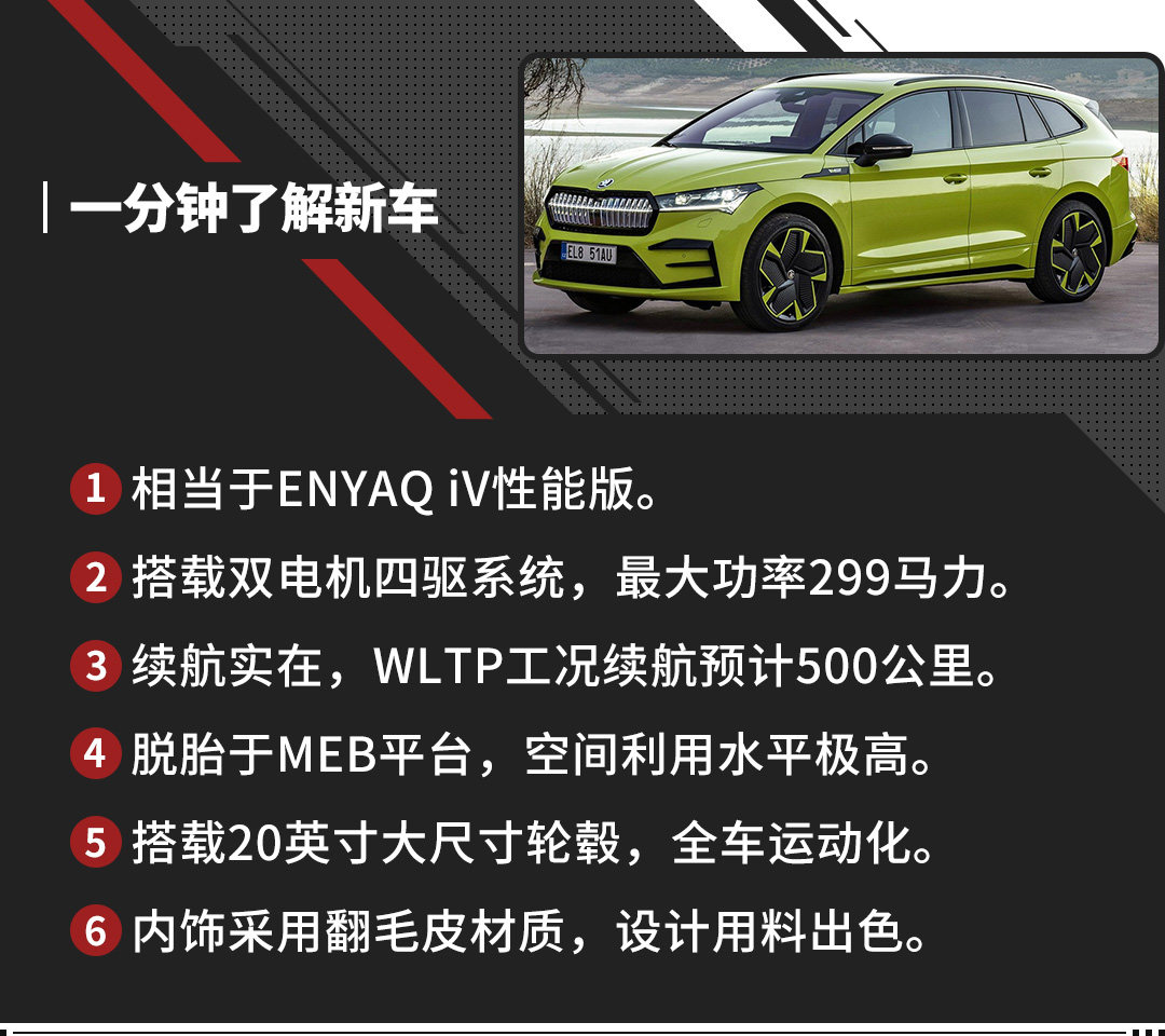这不,教授就看上了它最新产品之一的ENYAQ iV vRS,它可以视为ENYA iV性能版车型,不光是颜值升级,还有双电机+四驱的动力系统!所以我们一起来看下这款斯柯达纯电性能SUV,这究竟能有多吸引?
