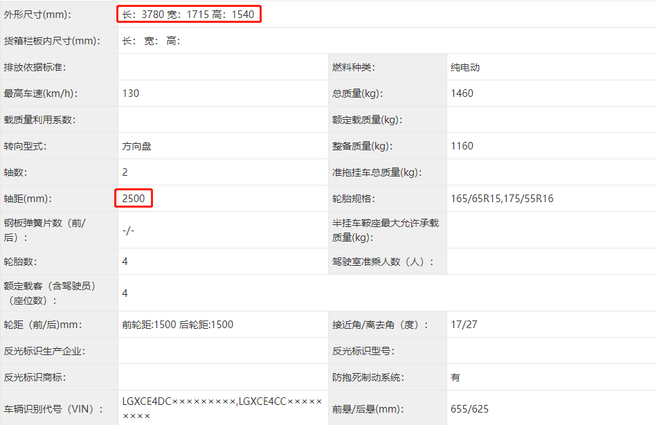 车身尺寸方面,新车的长宽高分别为3780*1715*1540mm,轴距为2500mm,与比亚迪海豚相比,新车整体尺寸相对来说要小一些,因此定位会比海豚更低,这也意味着定价也会比海豚更亲民一些。