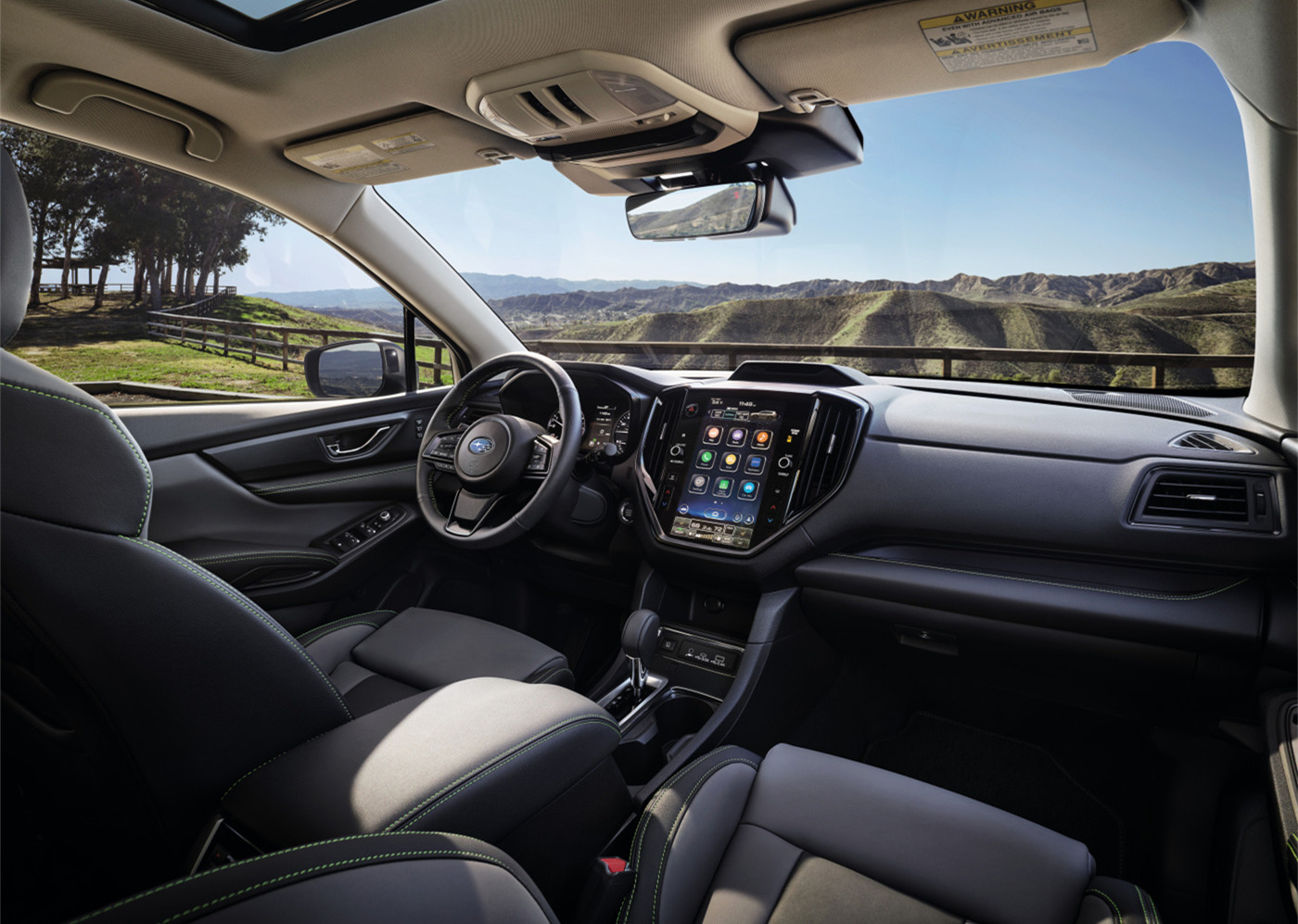 Onyx版以上的车型才会配备全景天窗,座椅采用了斯巴鲁的StarTex防水材料包裹,并带有绿色缝线。