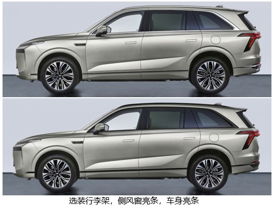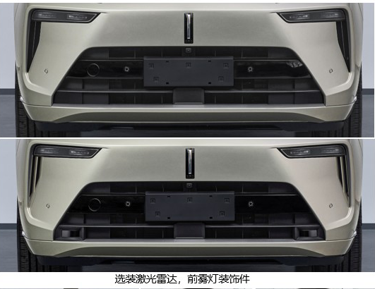 选装配置方面,新车将会在前包围的位置提供激光雷达可选,也就意味着新车将会为其配备高阶的辅助驾驶系统。与此同时,新车还提供两款不同样式的轮毂可选,以满足消费者个性化的需求。