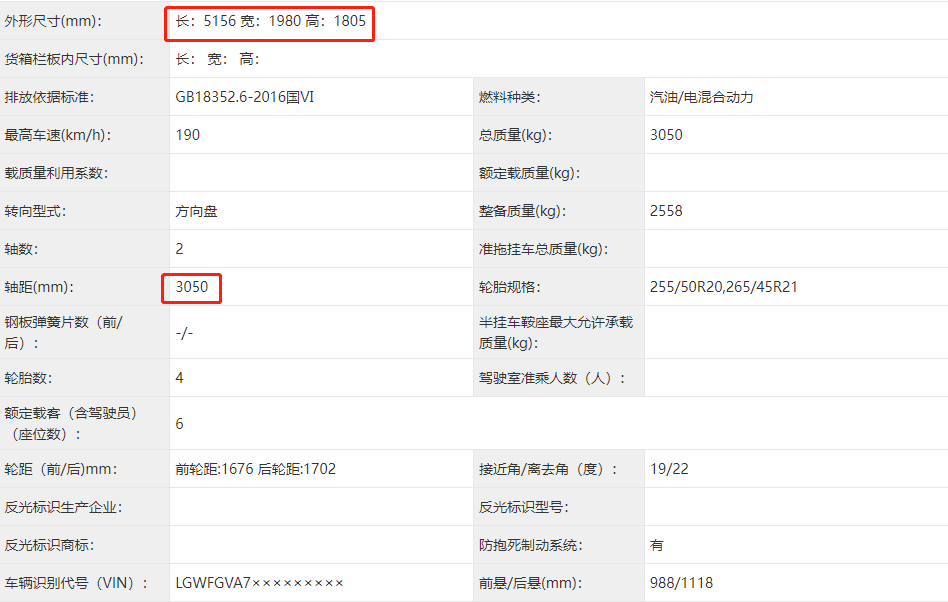 车身尺寸方面,新车长宽高分别为5156*1980*1805mm,轴距为3050mm,超五米的车长表现,带来强大的气场。此外,新车内部采用的是6座布局,超3米的轴距表现则为它带来更多可发挥的空间。