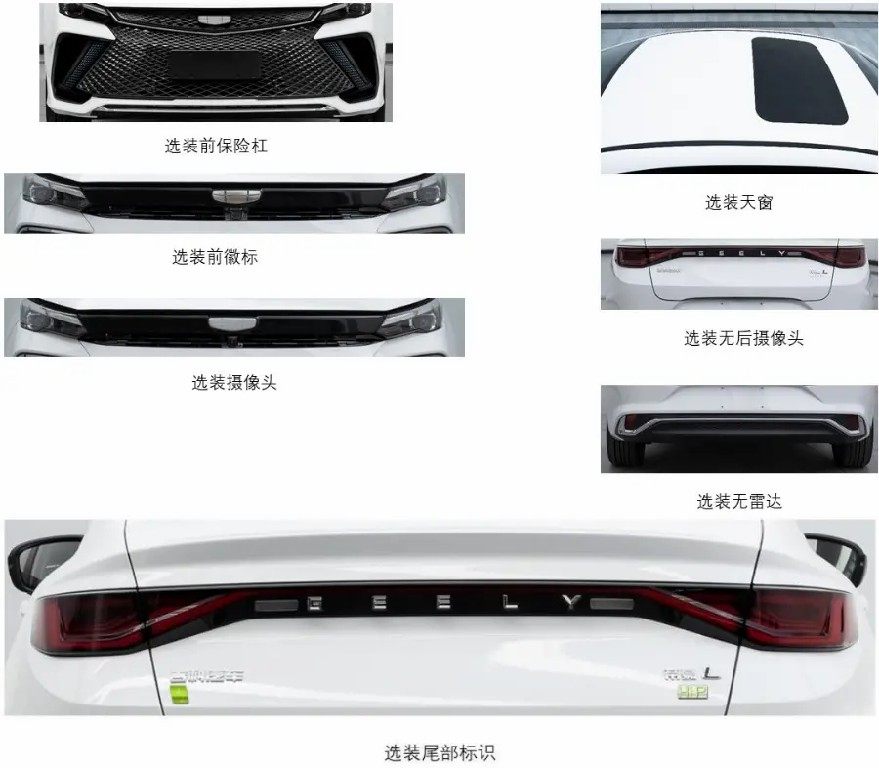 值得一提的是,新款帝豪L雷神Hi·P仍提供现款车型的前格栅样式,只不过已经列入选装中,除此之外也还提供发光车头徽标、天窗、后雷达等配置选装。