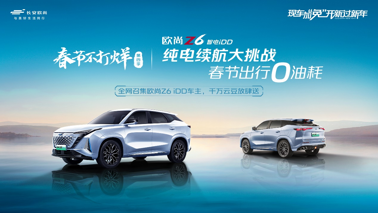 这次“纯电续航大挑战,春节出行0油耗”活动是继1月16日第四季“春节不打烊”活动启动之后,欧尚汽车发布的又一项宠粉福利。在国补退坡的大背景下,欧尚汽车第四季“春节不打烊”继续对部分车型提供购置税补贴50%的优惠政策。同时,还推出“现金礼”至高享22888元现金购车红包、“置换礼”至高享5000元置换补贴、“金融礼”至高享0首付或0月供或0利息、“保养礼”抽至高5年或10次免费基础保养权益、“流量礼”5年免费基础流量,以及“Z6 iDD专属礼”赠送充电桩(含安装)+三电系统终身质保(限非营运首任车主)等六大好礼回馈消费者。