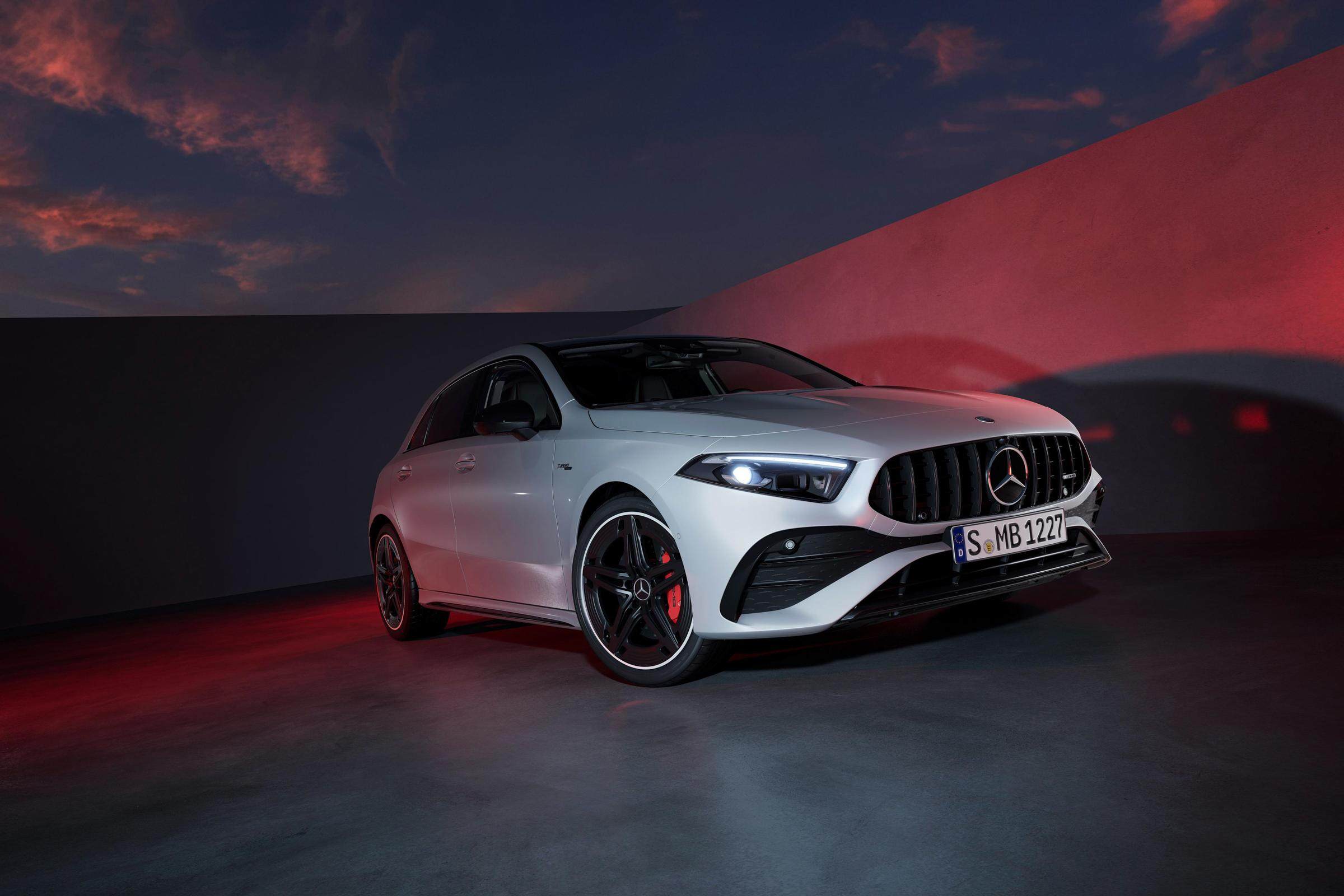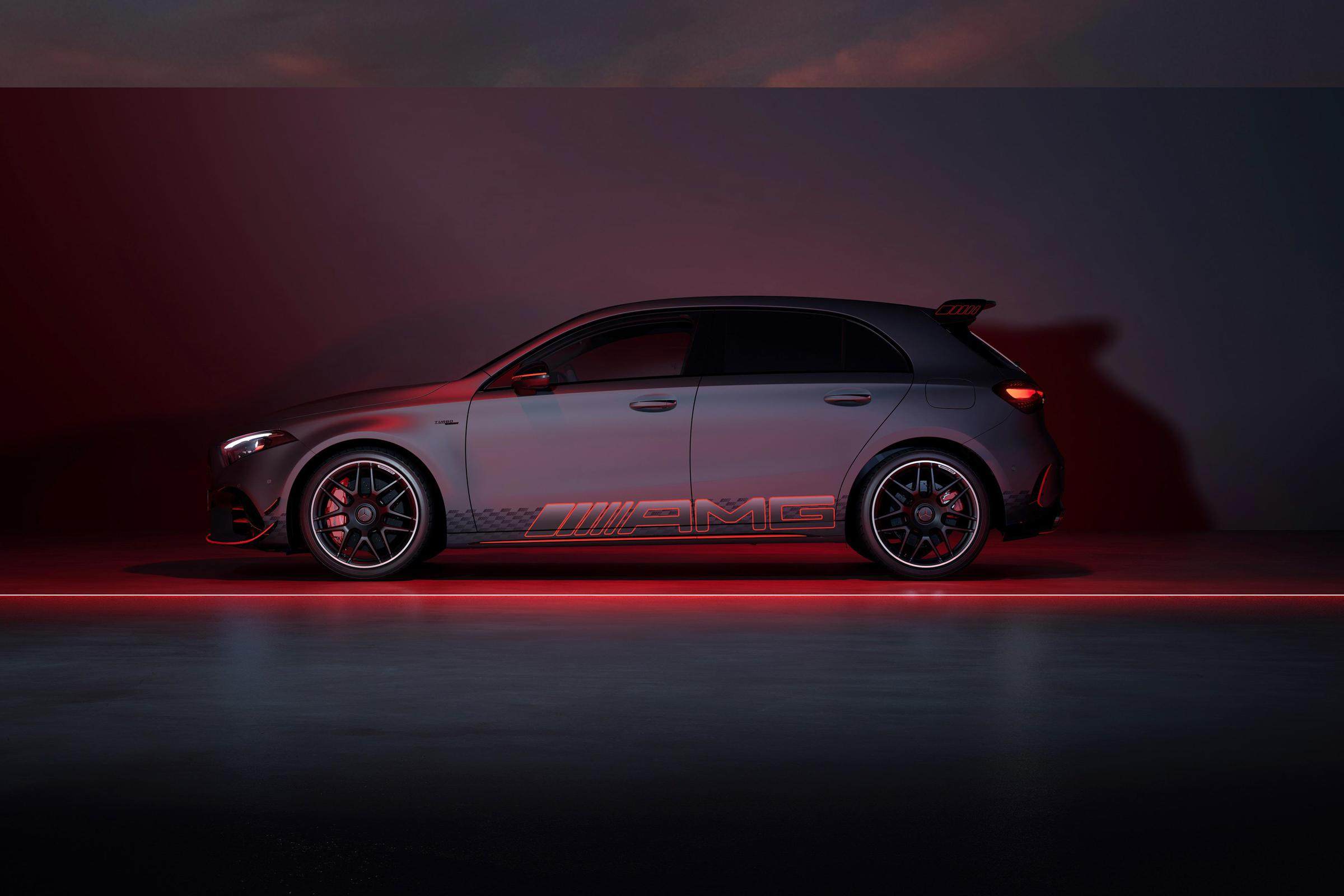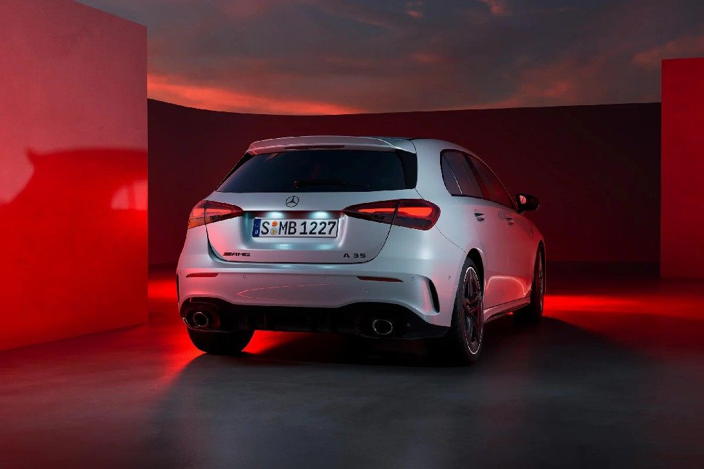 外观方面,新车型依旧采用了AMG家族样式的设计语言,和旧款普通版车型相比并没有过多改动。竖置式的多边形进气格栅、三段式带风道的下包围加上狭长大灯组十分具有品牌辨识度,配合低矮的车头和两厢车造型,活脱脱一个大钢炮模样。