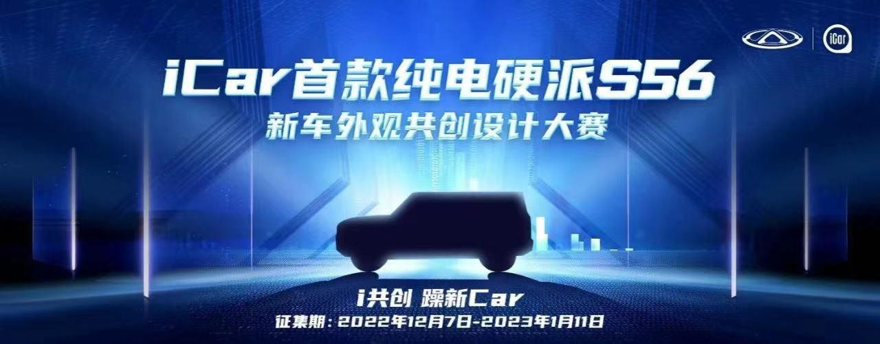 奇瑞在iCar生态下也将会推出首款纯电动硬派SUV车型,代号S56。新车目前邀请了全网用户来共创外观设计。共创大赛设置了奖金丰厚的三大奖项,其中最高奖项高达5万元现金奖励。