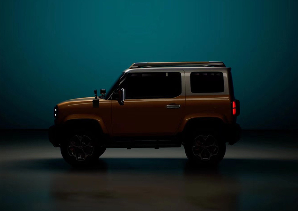 新车采用了双门的设计,LED大灯十分有科技感,保险杠、侧裙踏板、轮毂、行李架,以及侧开式的尾箱门都极富硬派元素,车身也会使用多种双色车漆搭配。