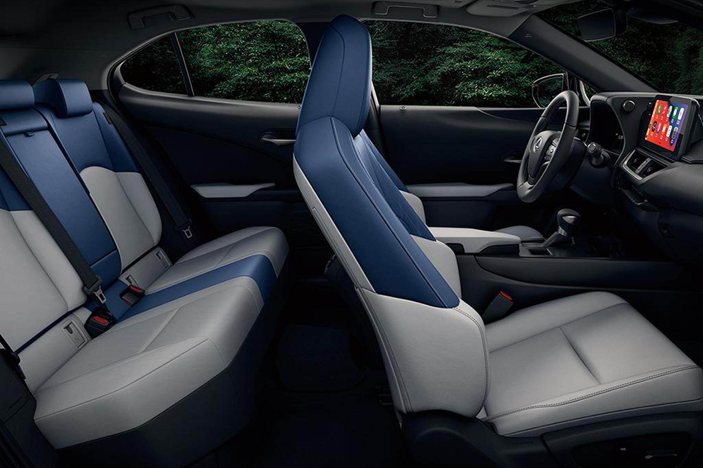 同样是以类似大嘴样式的大尺寸梯形进气孔取代了雷克萨斯标志性的纺锤式前进气格栅,但同样极具辨识度的L型日行灯则保留了下来,不过整体前大灯组却较为简约,可能是出于入门级定位的缘故。