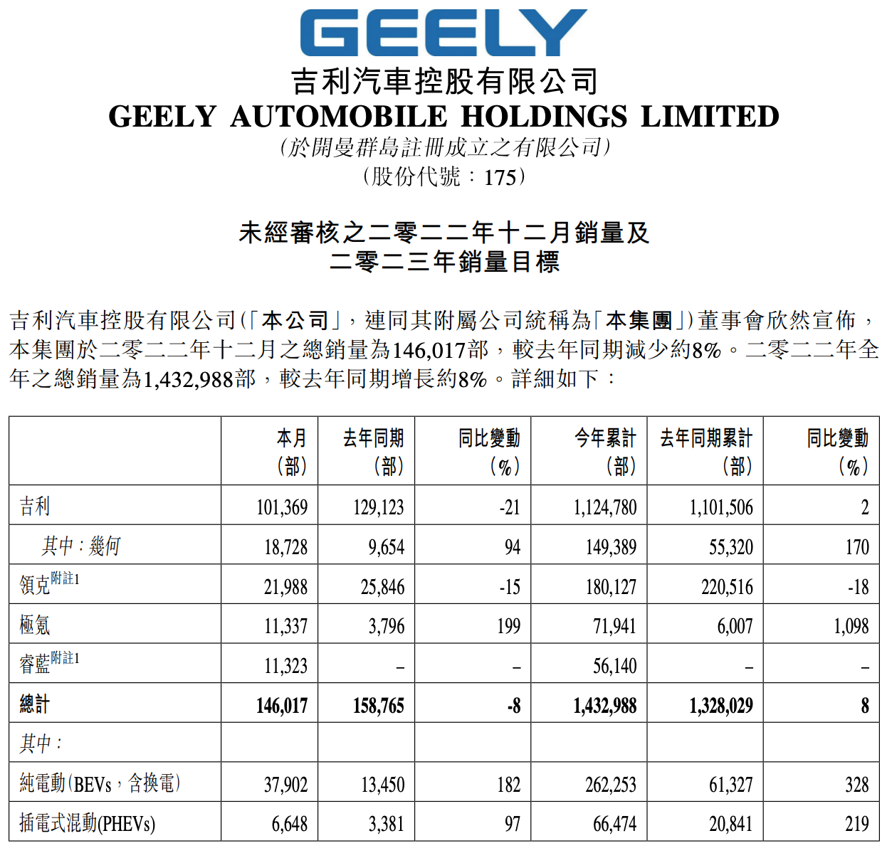 吉利再次将目标定为165万辆,之所以说是“再次”,是因为吉利2022年的销量目标也是165万辆,而去年它的累计销量为143.3万辆,同比增长7.9%,而这次吉利应该是势在必得,甚至可以说定的有些保守。