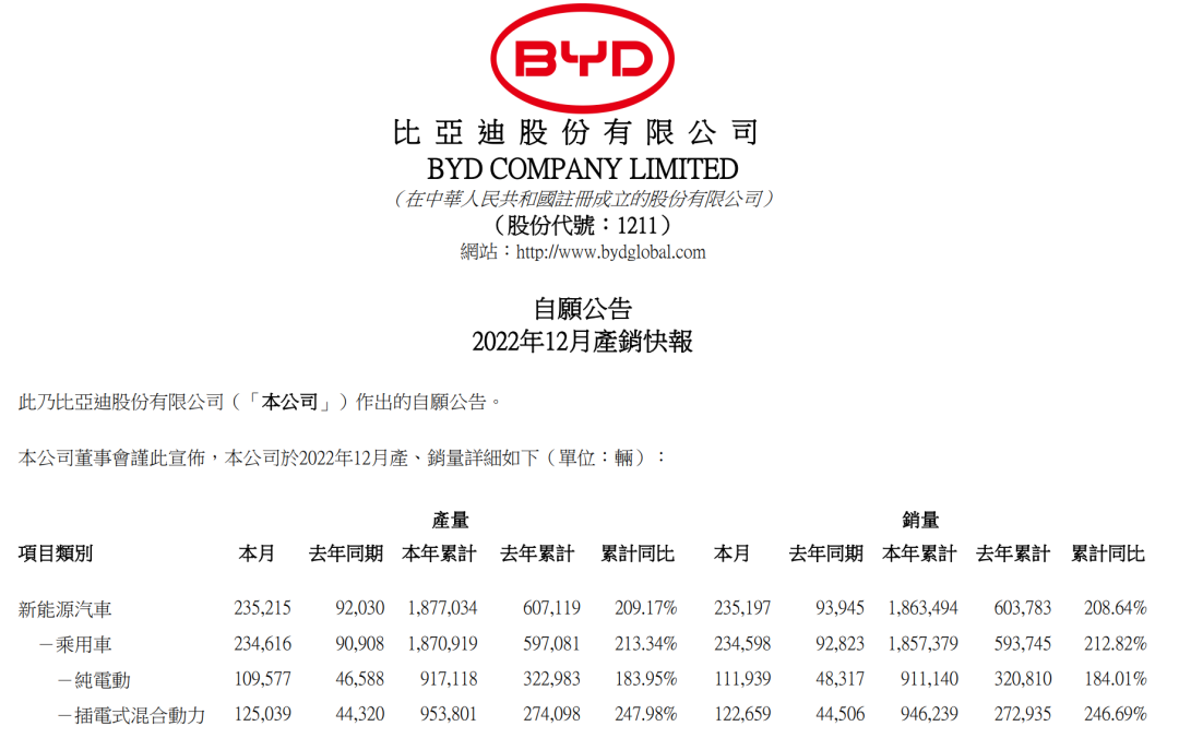 一方面是比亚迪目前的产品几乎每款都在热销,以12月销量为例,宋PLUS DM-i破4万辆,海豚、元PLUS、汉、宋Pro DM-i均超2万辆,海豹、秦PLUS DM-i、秦PLUS EV、唐DM均破万,其它也是在几千辆,甚至还有处在产能爬坡的,像腾势D9、护卫舰07。