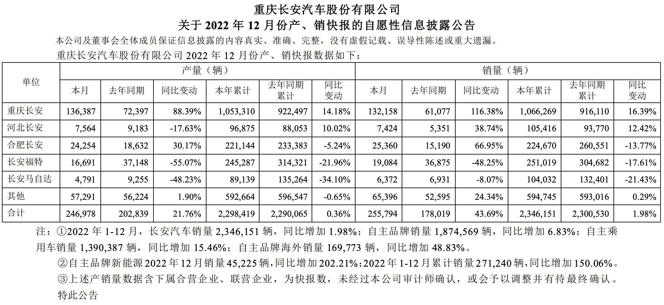 长安各品牌产品爆发给了长安冲击280万辆的底气。2022年长安全年累计销量为234.6万辆,虽然长安福特和长安马自达分别下滑17.61%、21.43%至25.1万辆、10.4万辆,但依靠自主品牌乘用车销量139.0万辆仍创下了销量新高。