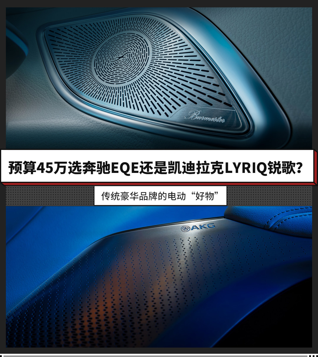 作为豪华品牌,一套合格的音响几乎是必须的。不过,奔驰EQE需要加10000万选装15扬声器、总功率710W的柏林之声环绕立体声音响系统,配合前排双侧隔音玻璃和整车声学包,可以带来迷人的声音美学;再加上车载净化器,进一步提升座舱空间的舒适性。凯迪拉克LYRIQ锐歌则标配19扬声器、1400W功率的AKG定制音响系统,包括头枕部分也设立了音响,营造身临其境的聆听体验。同时,像门斯之盾晶钻电控旋钮、树影婆娑氛围灯、无叶出风口、全景玻璃天幕等都是为内饰添彩的部分。
