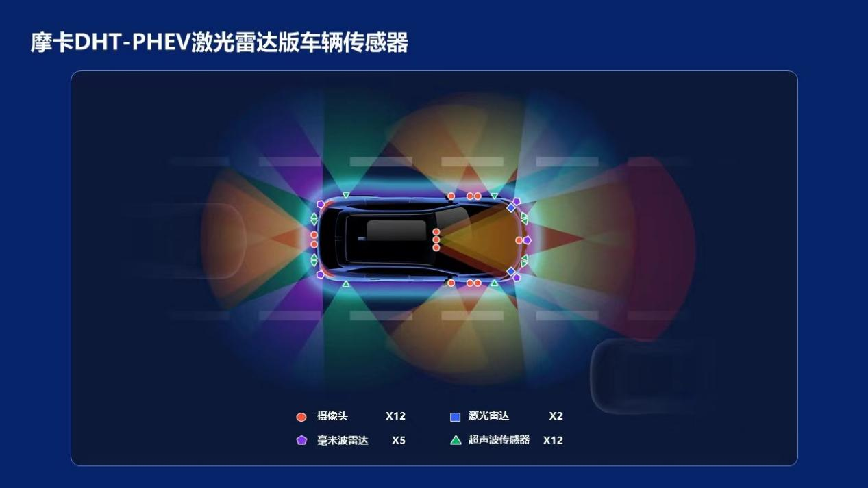 首先,我们先一起认识下什么是城市NOH,简单来说就是打通高速至城市辅助驾驶能力,给用户带来全场景的辅助驾驶方案。而摩卡DHT-PHEV激光雷达版更是另辟蹊径,采用了“重感知、轻地图”路线,通过2颗125线激光雷达,5颗毫米波雷达,12颗超声波雷达,4颗百万级像素环视摄像头,4颗百万级像素侧视摄像头,4颗800万像素感知摄像头,31个感知组件高效协同,确保对城市复杂路况及环境感知的准确性,补充和提升识别能力。
