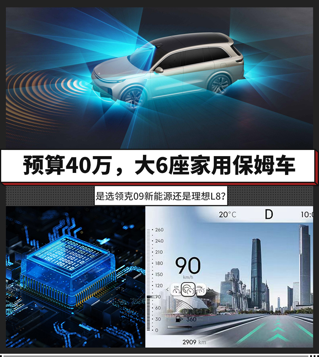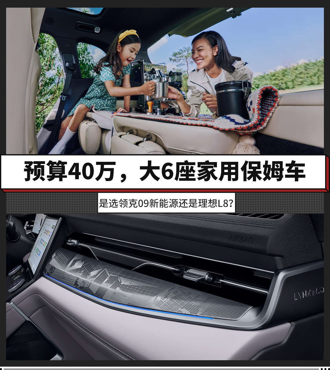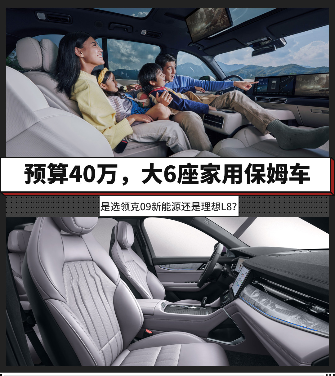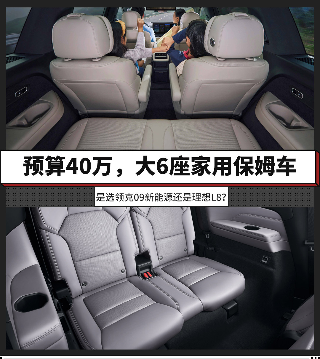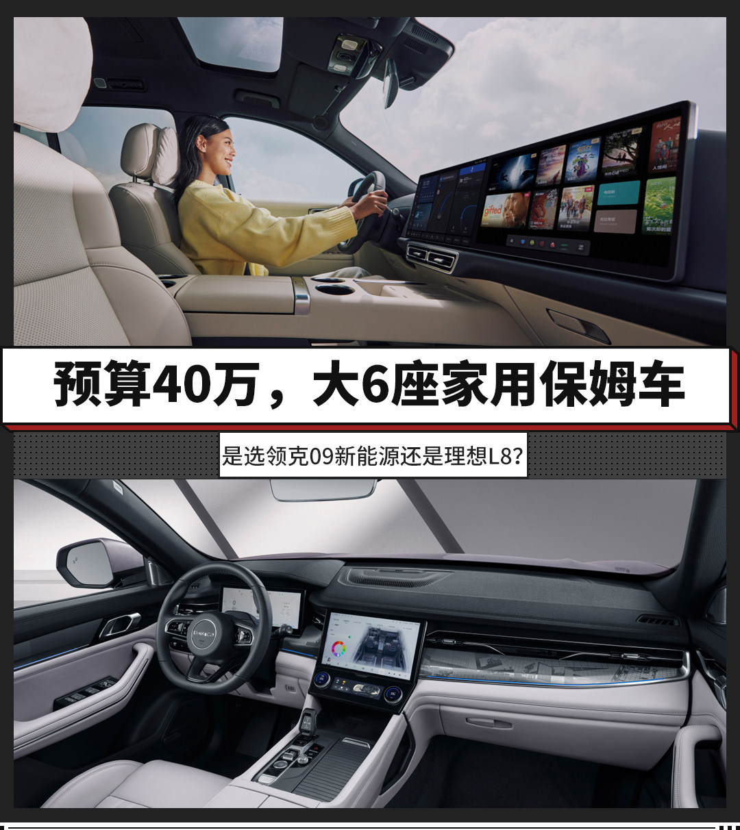 可以看出,在40万级新能源中大型SUV中,无论是领克09新能源还是理想L8都拥有极为优秀的产品力和实用属性;在科技、质感、动力、续航等层面也都有着不俗的表现,是名副其实的全能选手,完全可以满足大家庭用户的出行需求。当然了,这两车也各有各的“个性”,包括在设计、驾驶质感以及功能表现等方面,总体势均力敌,至于是选择领克09新能源还是理想L8,各位可以根据自己的喜好,酌情定夺。