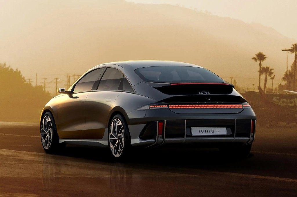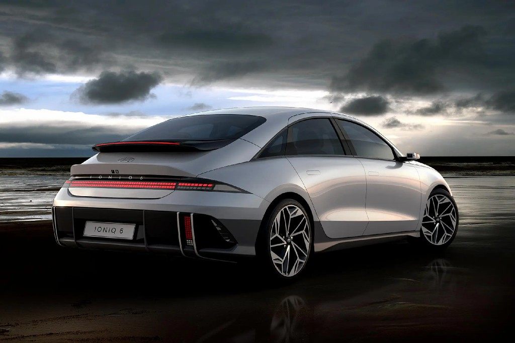 从假想图可以看出,IONIQ 6 N以现款普通版车型IONIQ 6为原型车,大体设计延续了其现有风格,不过新车加装了大量空气动力学套件,前唇、侧裙以及战斗气息拉满的专属尾翼等一应俱全。