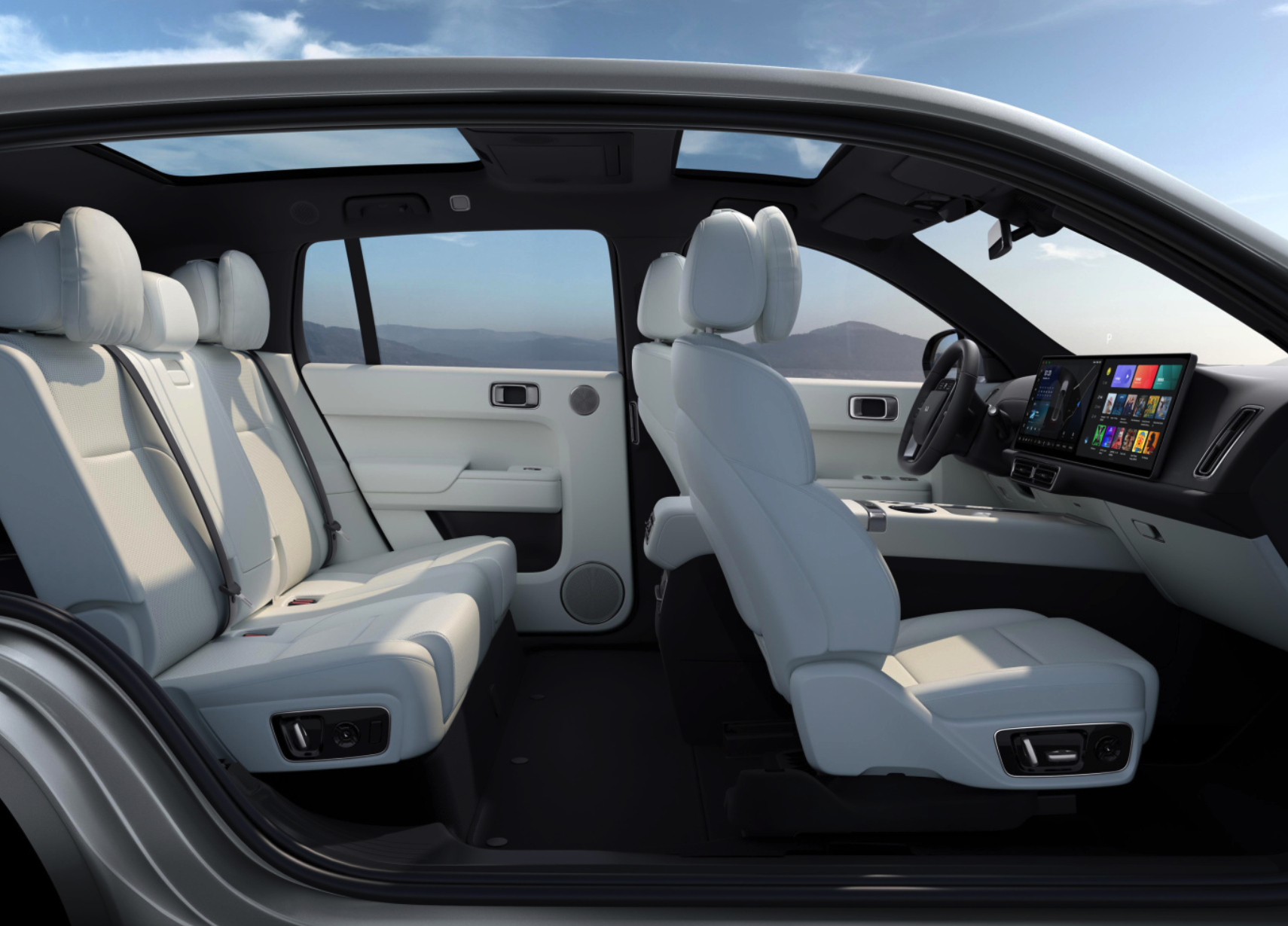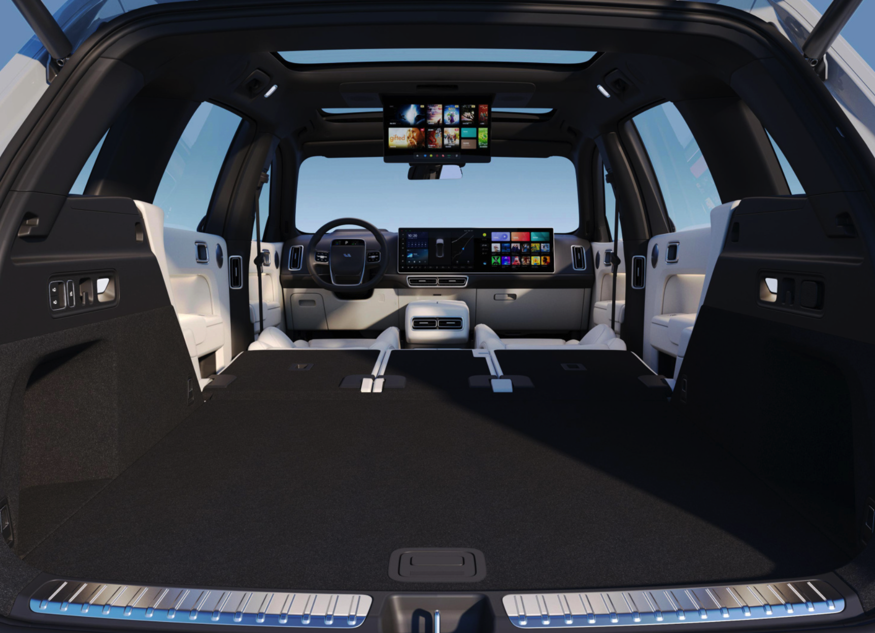它作为家族首款大五座SUV,动力总成由1.5T自研增程器+电机所组成,前者最大马力为154Ps,而永磁同步电机最大马力为449Ps,峰值扭矩为620N·m。在两者的加持下,零百加速时间只需5.3秒。