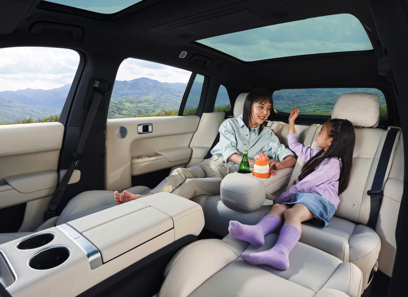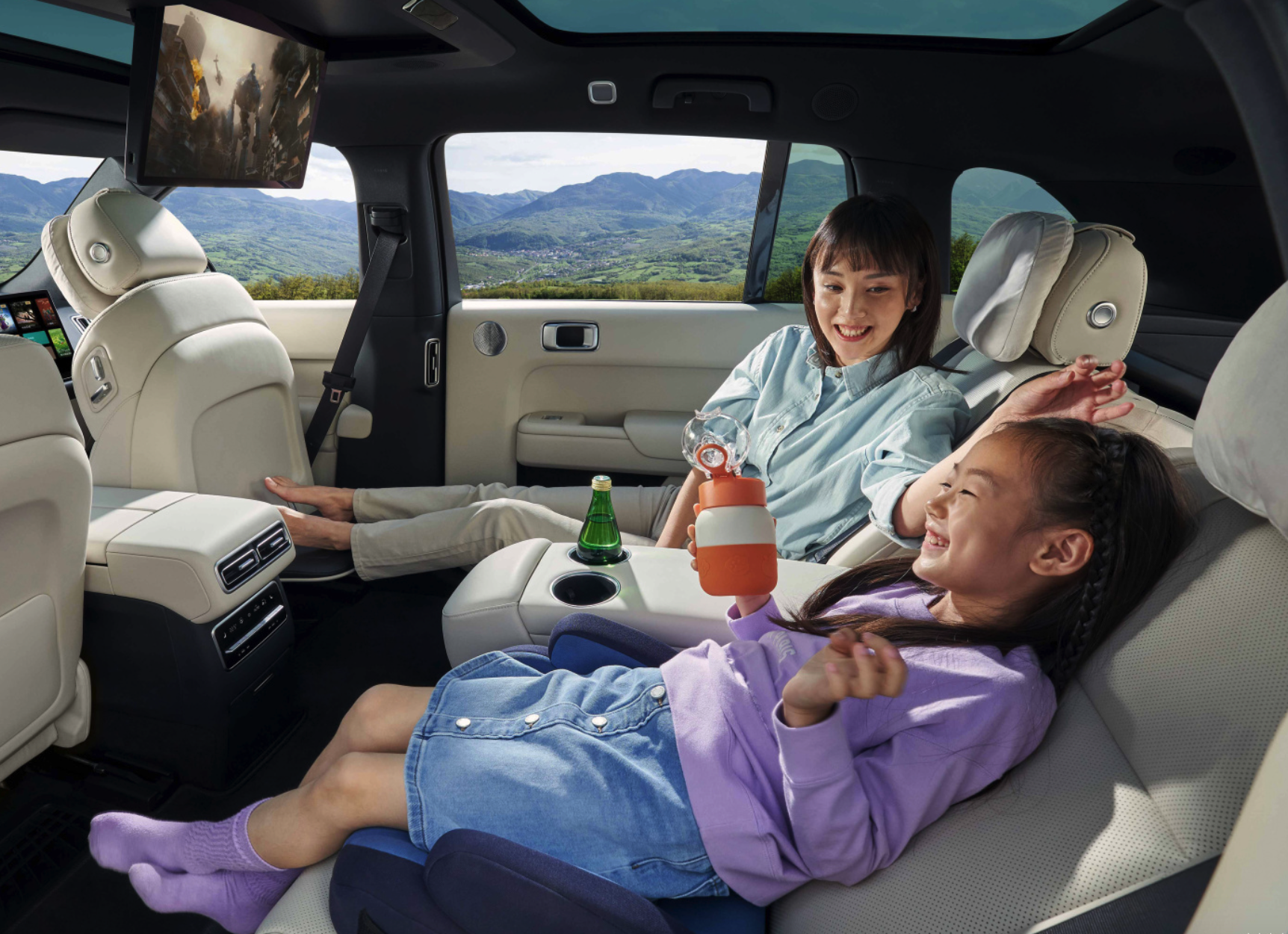 后排环抱式座椅具有“皇后座”之称,座垫长度达到52厘米,并具备电动脚托、电动调节功能,当中央座椅放倒后,三人沙发瞬间转变成独立座椅,能为后排乘员提供适合自己的坐姿。