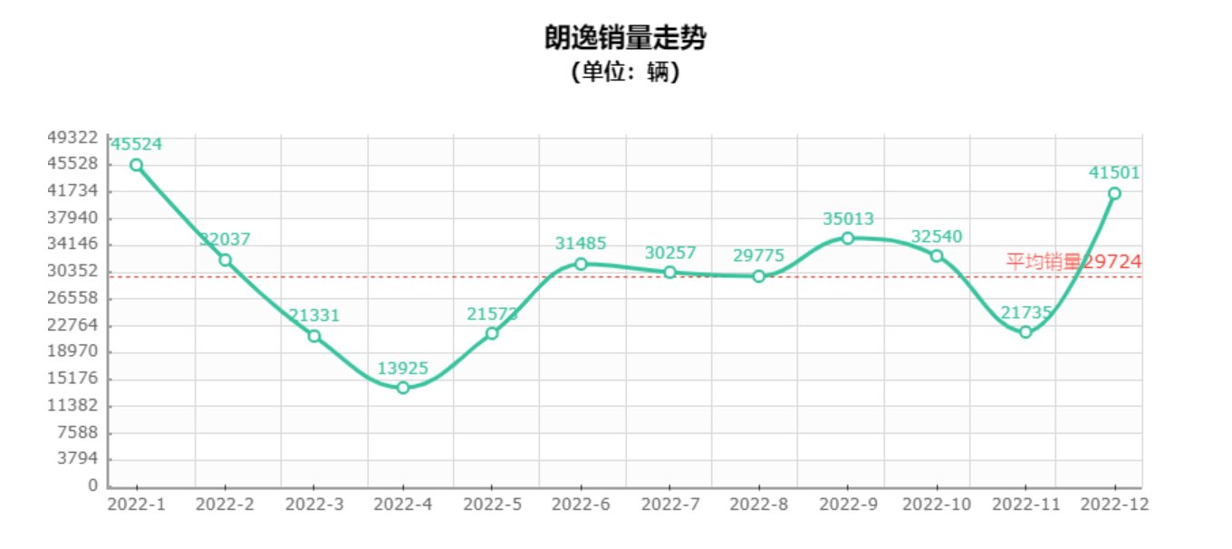 数据显示,朗逸在2022年的平均月销量为29724辆,最高单月销量达到了45524辆,全年有7个月销量都超过了3万辆,而上海疫情封控的3-5月份恰好是朗逸全年销量的低谷期。