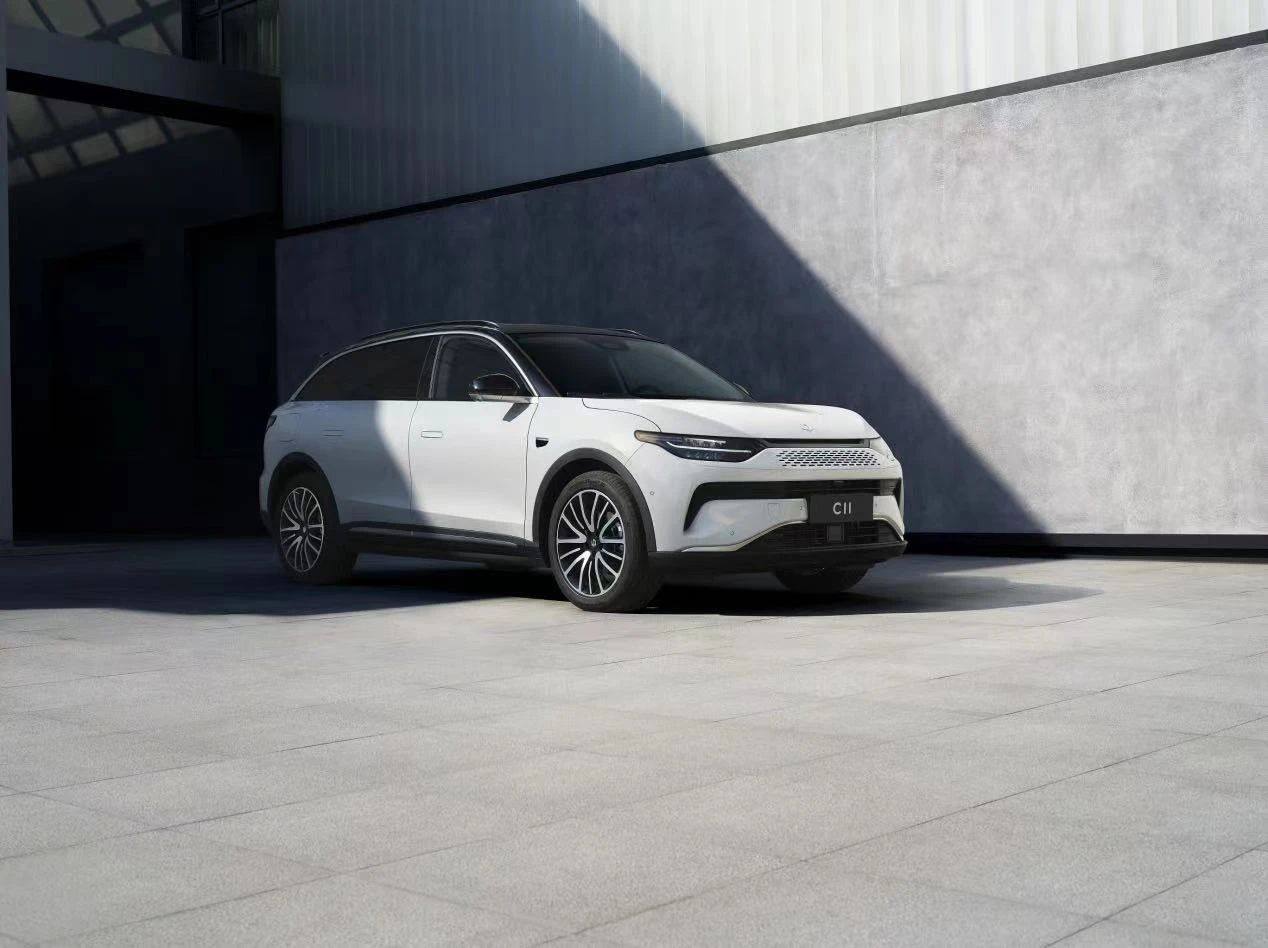 况且,目前从官方发布的信息来看,C11增程版和纯电版的变化是真不大,同级车型少有的无框车门也保留了。从官图可以看到,C11增程版的外观和纯电版仅是在细节方面有区别,比如前脸不再是纯电车型的封闭式格栅,增程版增加了星点式的通风口和横向格栅,视觉更有层次的同时也带来了更好的散热性能。