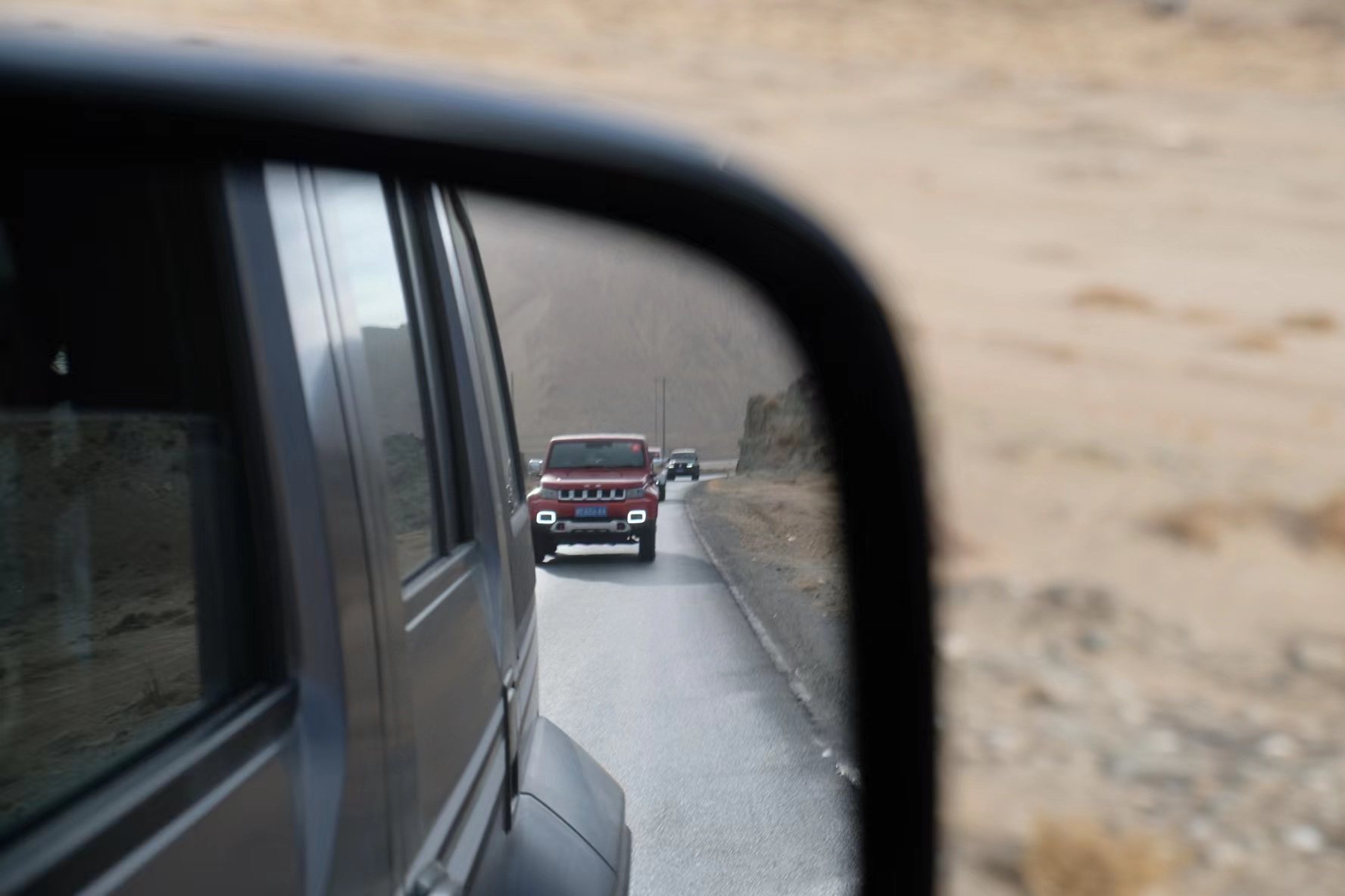 需要“吐槽”的是,北京BJ40环塔冠军版车型的B柱非常宽,一定程度上影响了我拍摄户外的美景。不过后面得知,它是采用了“双B柱”的设定,这样的目的是提高了侧撞的高强度防护,加上专业的两道“梁”和防滚架,让整车做到“上不松,下不动”,实现了越野场景下对极端翻滚状况的有效保护。