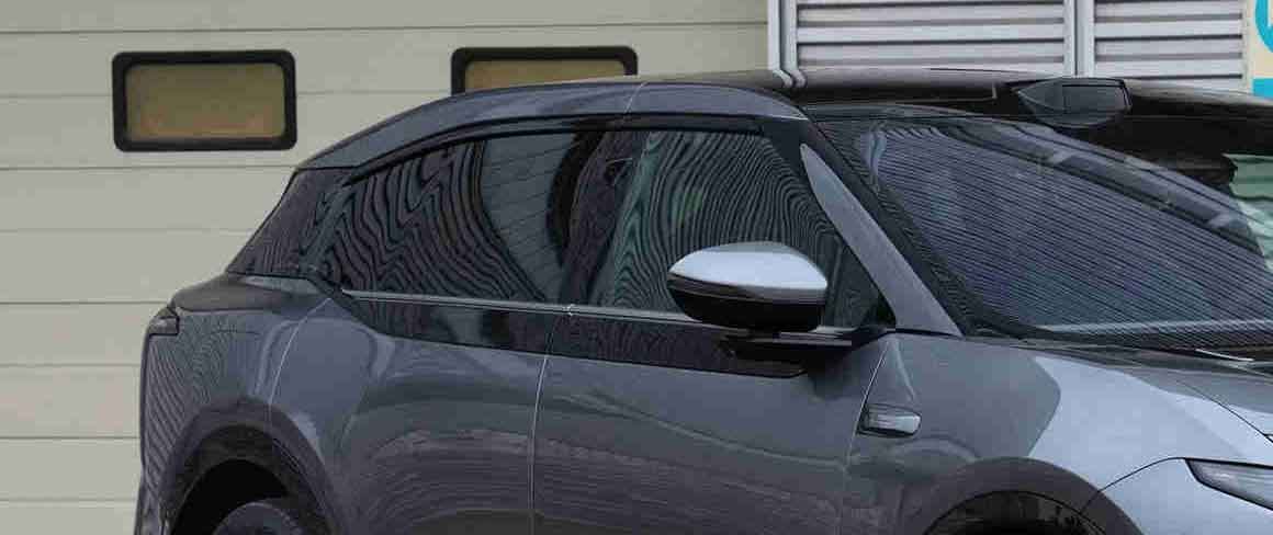 来到车侧,新车的整个车身采用简约的造型设计,没有过多烦乱的线条设计,整体看起来确实是比以往要显得正常一些。但细看会发现,HiPhi Y似乎并没有采用常规的门把手设计,就连隐藏式的门把手都没有,但在车身的腰线位置又带有一条黑色的饰条所点缀。