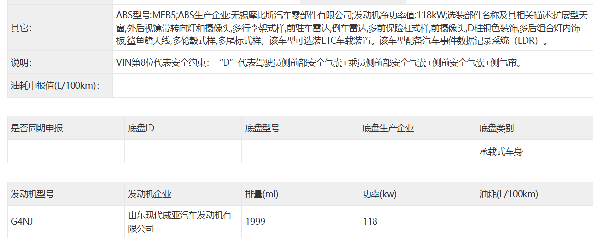 动力将搭载由山东现代威亚生产型号为G4NJ的2.0L发动机,其最大功率为161马力,与ix35相同,或匹配自家的6AT变速箱。