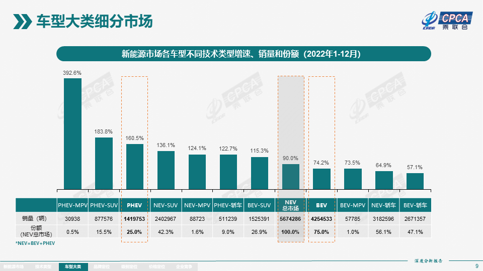 一方面是插混市场的爆发式增长带来的利好。在过去的2022年,插混市场的增长速度达到160.5%,纯电市场的增长速度为74.2%;而今年的1月,插混市场零售销量约11.8万辆,同比增长48.8%,纯电市场只有21.4万辆,同比降低22.3%。