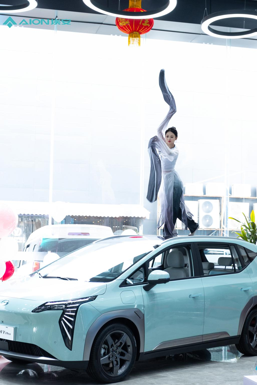 国风音乐响起,一段复古水袖舞,搭配车顶舞蹈,为现场嘉宾带来广汽埃安汽车的安逸之感。埃安汽车内饰精致、智能合一,安全性和平顺性极高。再加上2.2平米的全景天幕让每一次出行都是流畅舒适的体验。