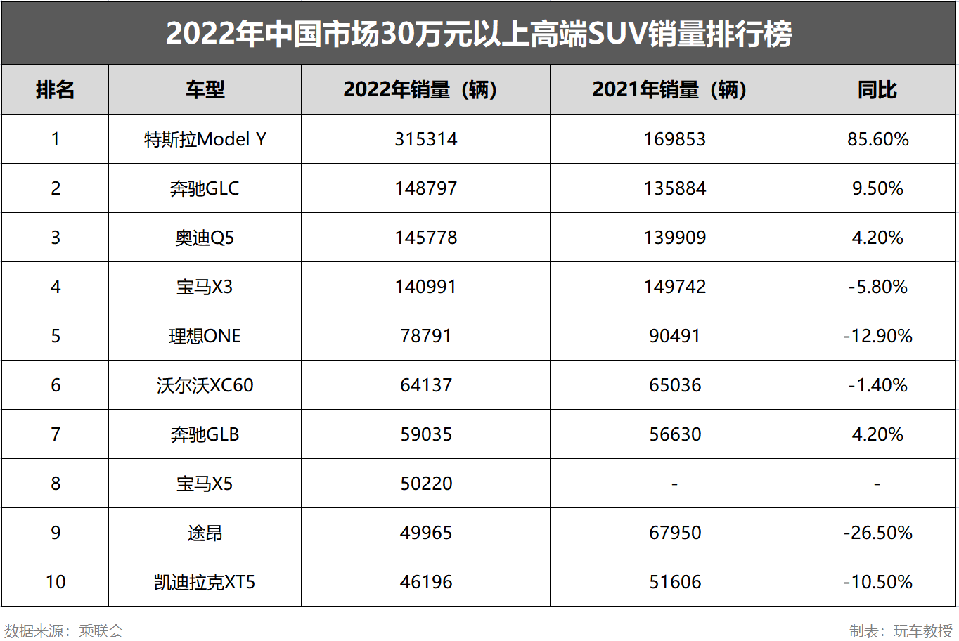 如果说在2021年BBA还能给当时已经是高端SUV市场销冠的特斯拉Model Y些许压迫感,那么后者在2022年高端SUV市场上的销冠地位无可撼动。