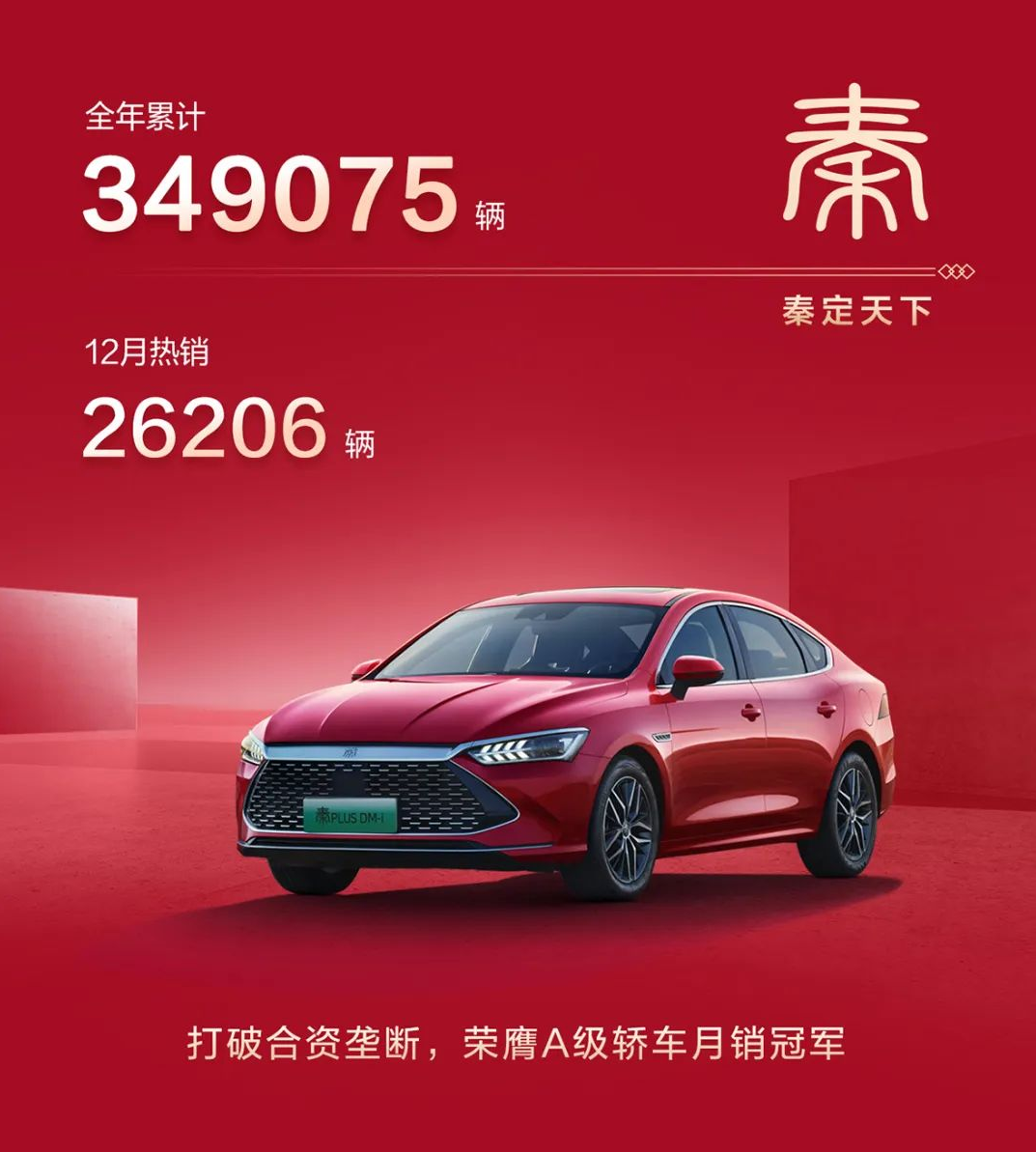 据了解,新款秦PLUS DM-i之所以叫“冠军版”,正是为了纪念它在去年一举击溃轩逸、朗逸等合资紧凑级轿车,拿下了紧凑级轿车月度销量冠军。
