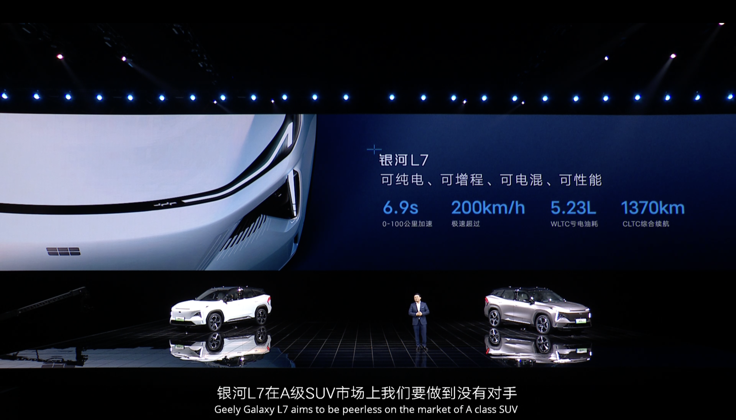 发布会当天首先出场不是即将发售的全新产品银河L7,而是吉利银河智能电动原型车——“银河之光”。