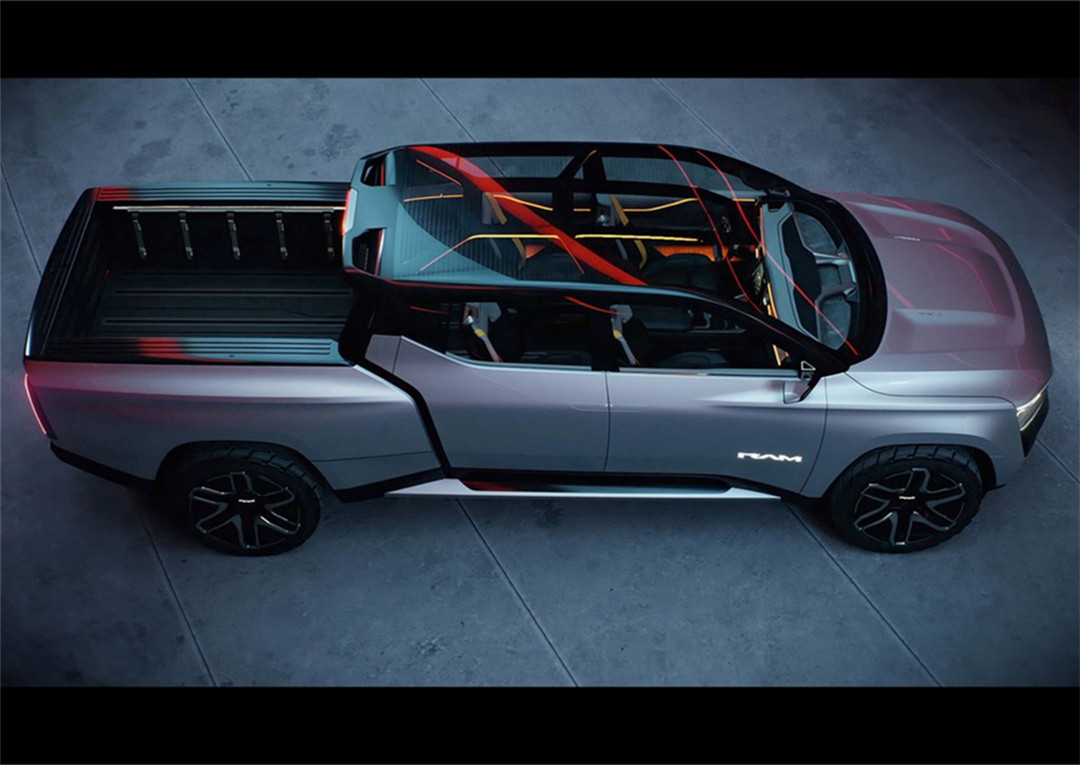 新车延续了Ram 1500 Revolution BEV概念车的设计,也比较接近于燃油版的RAM 1500,但前脸等细节进行了重新设计。