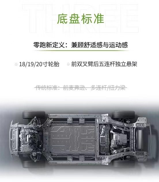不管是以前还是现在,很难想象一款定位为中大型轿车能卖到15万元以内这个价格,更难想象它还是一辆成本更高的纯电动车。而以前总以为价格便宜的车型,一定是哪里偷工减料了,但零跑C01并没有,入门版续航里程能达到525km,并且采用后驱布局,以及采用了前双叉臂式后五连杆式的悬架设定。