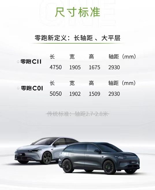 而零跑C11和C01两款车型,则重新定义了15-20万级汽车价值标准,一方面是源自于自身强大的产品实力,首先拥有着越级的车身尺寸,零跑C11和C01的轴距达到了2930mm,在15万元以内的价格里很难再找到拥有如此轴距的车型。