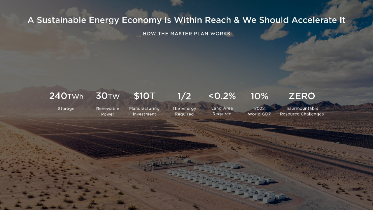北京时间3月2日,特斯拉2023投资者日活动在美国得州超级工厂举行。特斯拉CEO埃隆·马斯克现场揭晓特斯拉“秘密宏图”第三篇章 —— 全面转向可持续能源,目标在2050年前实现能源100%可持续。