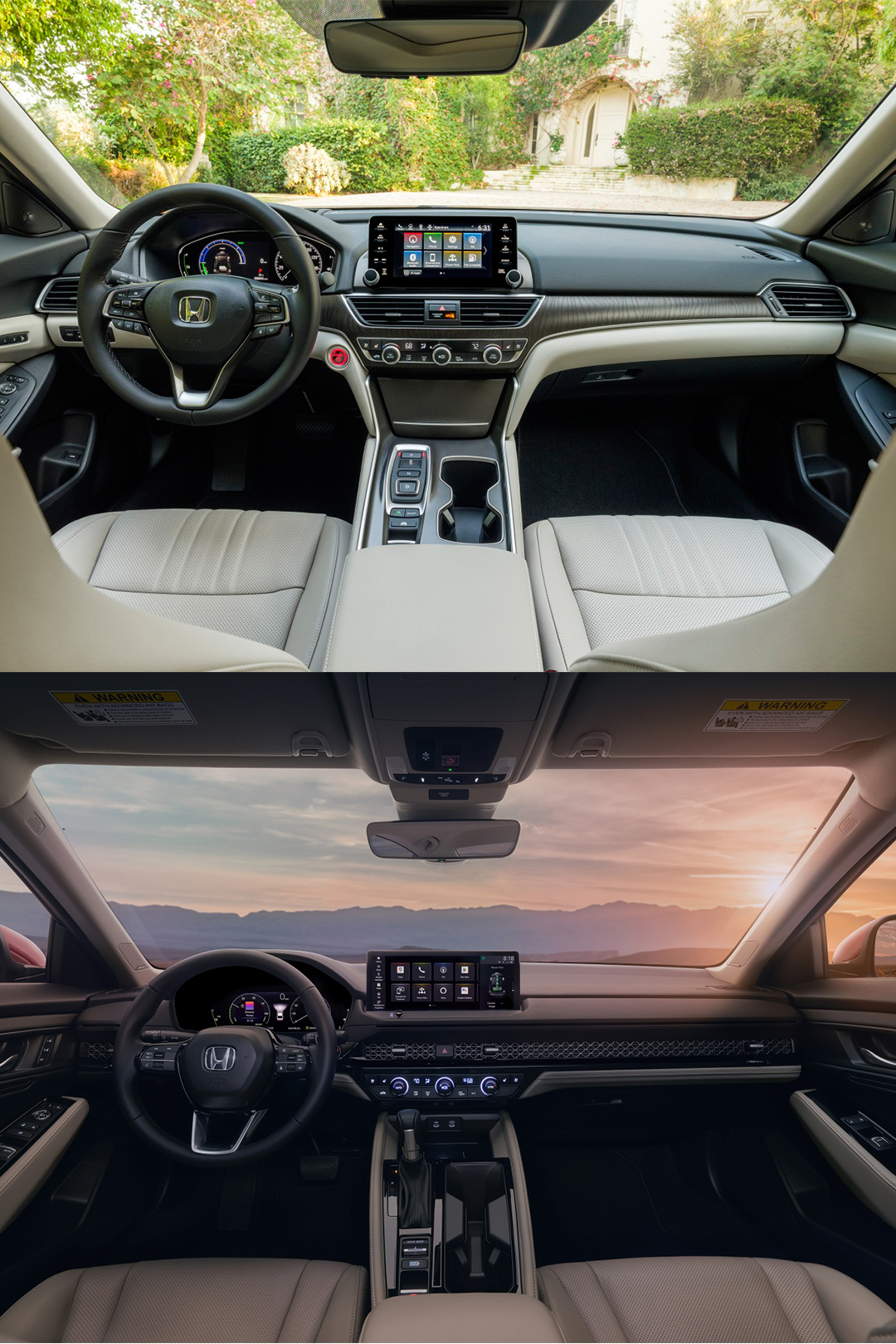 内饰也是全新一代雅阁升级最明显的地方,不过说好听点就是采用家族式最新设计语言,难听点就是沿用本田型格/思域的设计,很容易就使消费者产生一种错觉:这内饰怎么和思域一样?而抛开这层面来说,新一代雅阁内饰相较现款提升还是很多,配备10.2英寸全液晶仪表盘、12.3英寸悬浮式中控屏,科技氛围更加浓厚了,功能也更加丰富。