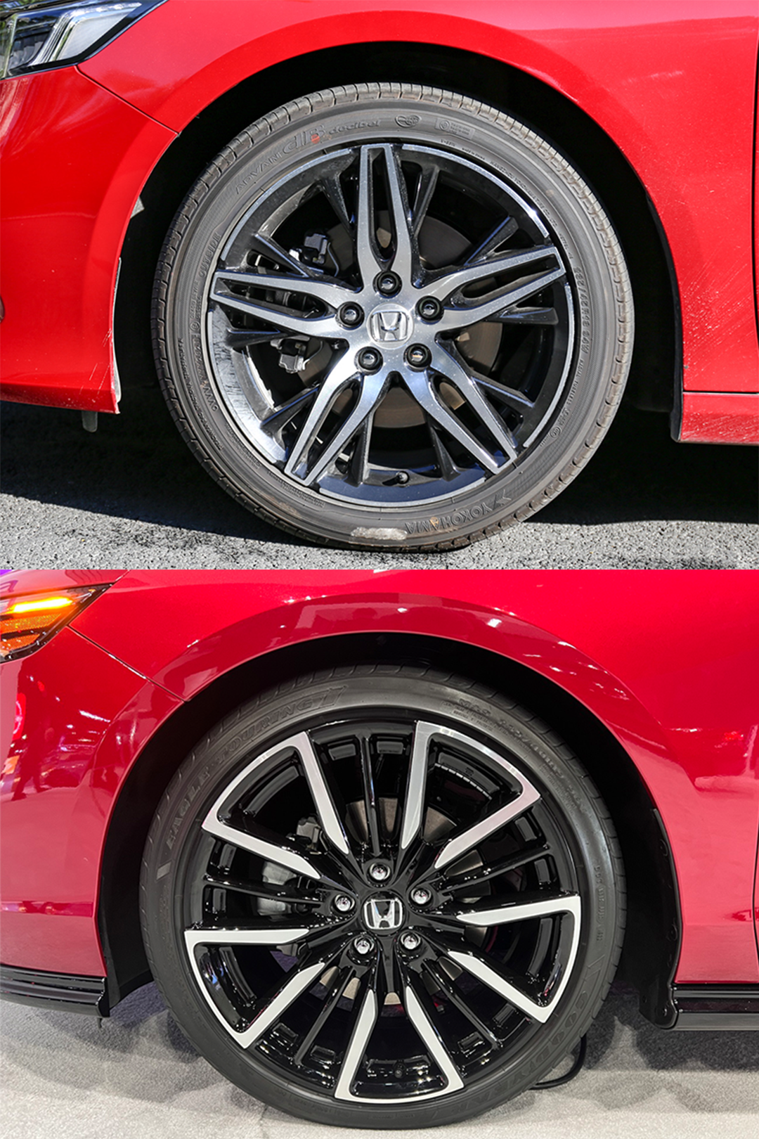 而十一代雅阁重点改变的地方在于前脸和尾部,具体效果如何大家看图相比就行了,而外观提升的地方教授认为是新增了19英寸五辐双色轮毂(海外版车型),让整车看起来更加饱满有力量感,而现款车型最多只配到18英寸轮毂。