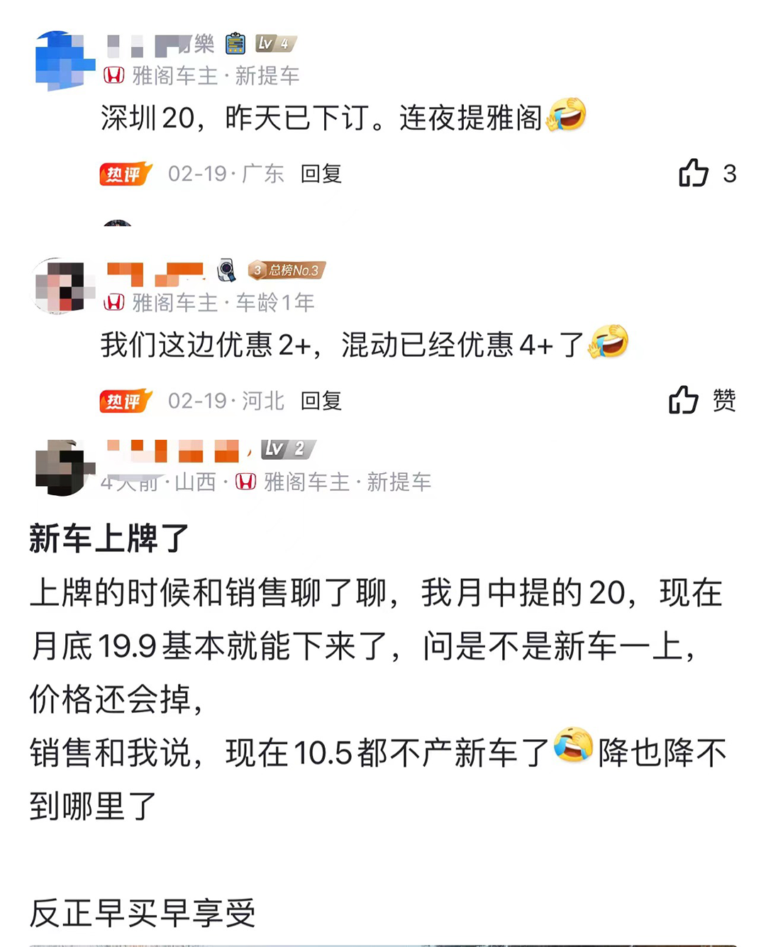 但终端市场优惠预计在短时间内不会太大,这就意味着新一代雅阁与现款雅阁的价格差就体现在优惠上,现款优惠力度越大,就越能弥补与新一代雅阁产品力之间的差距。而目前现款雅阁普遍优惠2万元,混动版车型优惠更是达到2.6万元。