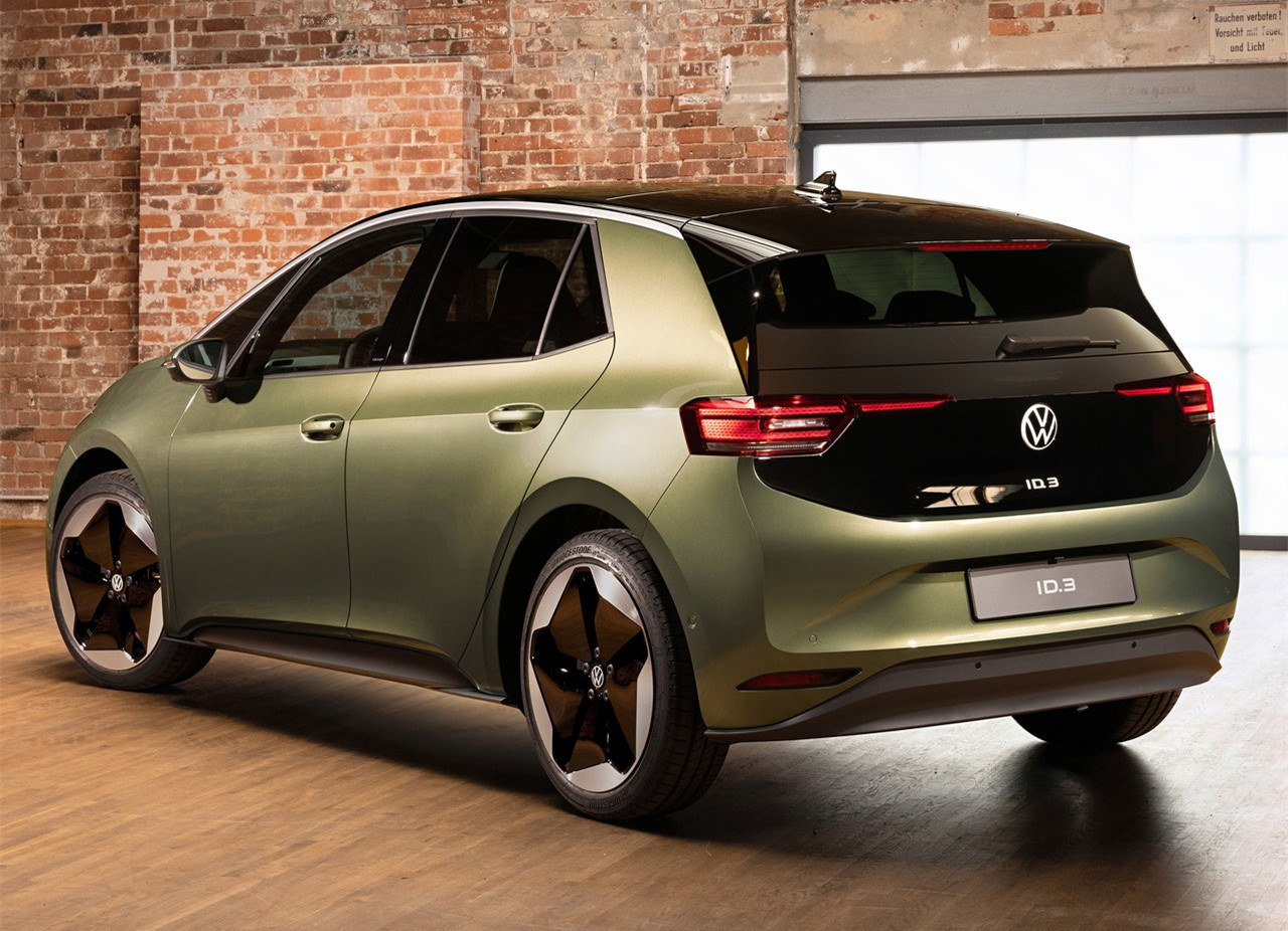 车尾的造型基本不变,只是尾灯内部的结构有些不同,多了一条白色的灯带,还带有网状的纹理。中期改款ID.3在车身颜色上新增了橄榄石绿,LED大灯标配了主动光束控制功能。