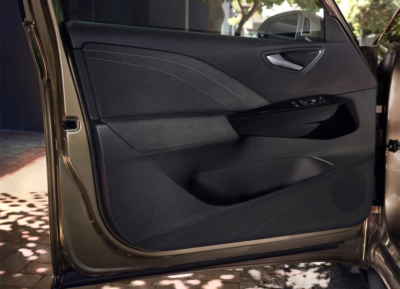门板造型与外观一样进行了简化,并加宽了手枕的位置,上方门板和座椅都用上了Artvelours超细纤维材料,这种织物是由71%可回收塑料制成,前排座椅还改成了一体式头枕的样式。